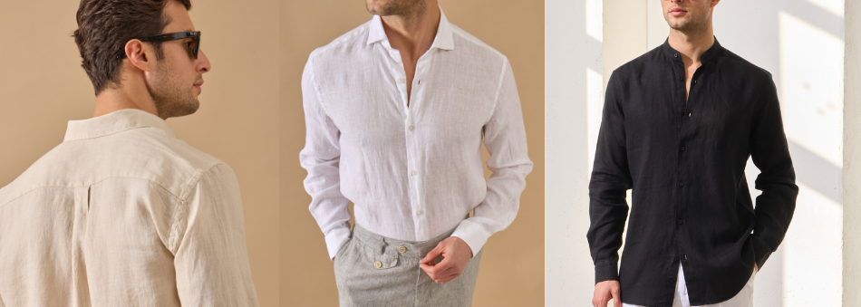 BLACK 100% LINEN ITALIAN COLLAR SHIRT